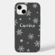padrão branco de flocos de neve no fundo da cinza com o nome para personalizar