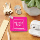 Chaveiro cor-de-rosa que você pode personalizar para colocar seu nome de empresa e logotipo. A cor da fonte é branca. Um acessório que você pode fornecer como item distribuído aos seus clientes. Chaveiro que você pode incluir em seus materiais de marketing para anunciar sua empresa ou para promover seu nome de marca aos clientes. Chaveiro com seu nome de empresa e logotipo para criar reconhecimento de nome de marca. Para personalizar este chaveiro quadrado, carregue o logotipo da sua empresa e digite o nome da sua empresa e verifique a aparência nos lados frontal e traseiro. Se a aparência lhe agrada, você pode colocar seu pedido agora. Se você precisar redimensionar e mover o logotipo e os textos para o ajustado neste chaveiro ou em outros estilos e formas que você escolher, mude na ferramenta design. Você também pode fazer outras alterações de acordo com sua preferência na ferramenta design, como alterar a cor do fundo, a cor da fonte e o estilo da fonte.