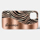 Este design apresenta um padrão de rosa de ouro cônico e risca de tigre preta à esquerda, e uma imagem de folha falsa de ouro rosa à direita na forma de uma onda limitada com brilho falho rosa dourado. Personalize-o com seu nome ou monograma em uma fonte de pincel na moda preto manuscrito.