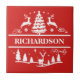 Nome da família Red Christmas nome personalizado monograma azulejo de cerâmica de férias. Elevem a decoração de Natal com este azulejo de cerâmica personalizado. Este azulejo personalizado de nomes de família adiciona um toque único às suas decorações de férias e faz uma cuidadosa e apreciada manutenção da família.