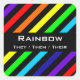 Um padrão de arco-íris e listras pretas com espaço para um nome e pronomes personalizados.