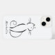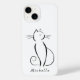 Gato preto minimalista em um caso branco no iPhone 14. Personalize esta capa de telefone elegante com o seu nome.