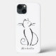 Gato preto minimalista em um caso branco no iPhone 13. Personalize esta capa de telefone elegante com o seu nome.