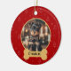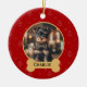 Celebre seu amigo peludo nesta temporada de festas com um enfeite de Natal personalizado com foto do seu animal de estimação. Este enfeite vermelho festivo apresenta um padrão natalino fofo, uma foto personalizável e uma plaquinha personalizada em forma de osso.