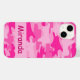 Aproveite esta divertida design de camo rosa-rosa feminina personalizada no seu cobrir de celulares para iPhone. Esta camuflagem é uma arte original em tons de rosa e cor-de-rosa fuchsia. Uma faixa de rosas claro atravessa o telefone e fornece uma área para personalizar com seu nome, iniciais de monograma ou outras palavras de sua escolha, como nome comercial ou ditado. Este design de camo giro e giro é da artista e designer tecido Phyllis Dobbs e está disponível em camo verde-oliva vermelho, azul, verde-oliva claro e verde-oliva mais escuro em vários produtos para seu prazer ou para presentes no excelente. Divirta-se com camuflagem! Totalmente personalizável para personalização.