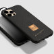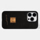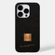 Capas de iphone monograma, de aparência tradicional, com aspecto exclusivo, com um quadrado dourado falso sobre um fundo de na moda preto (IMPRESSO, NÃO IMPRESSO TEXTURA DE COURO REAL). +++++++++ Personalize-o com o seu nome de assinatura de script branco e as iniciais do nome do monograma.