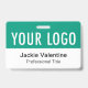 Personalize nosso nome profissional crachá PVC com o logotipo da sua empresa, nome do funcionário, título do trabalho ou outro texto personalizado. É feito de plástico PVC durável. Desenvolvido em esmeralda verde e outras cores com uma design moderna minimalista do MISOOK. Todas as cores são personalizáveis. Disponível com um pátio, clipe de metal ou bobina retrátil. As dimensões são de 3,38 polegadas x 2,13 polegadas. Nenhuma quantidade mínima de ordem e nenhuma taxa de configuração.