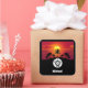 Silhueta de tartaruga negra sob um monograma de diamante. Acima do réptil está uma imagem de palmeiras na praia, feita numa silhueta durante o pôr do sol. A foto pode ser substituída por sua própria selfie. Abaixo do emblema da tartaruga está uma opção de nome de etiqueta.