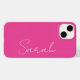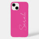Personalize esta capas de iphone rosa-quente quente minimalista que apresenta um nome de script de estilo manuscrito de tendências em branco.