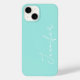 Personalize esta capas de iphone verde de sábio minimalista que apresenta um nome de script de estilo manuscrito de tendências em branco.
