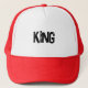 Nome de texto rei ou Bonés de cor branca e vermelha que têm um tamanho de letra agradável e parecem muito na moda e bonitos chapéus