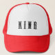 Nome de texto rei ou Bonés de cor branca e vermelha que têm um tamanho de letra agradável e parecem muito na moda e bonitos chapéus