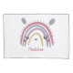 Bonito é a palavra para esta fronha com um adorável animal arco-íris com um rosto doce, orelhas e um lugar para um nome. O fundo é branco simples! Super divertido em um quarto de bebê ou crianças ou para fãs de kawaii!