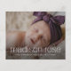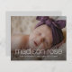 Um anúncio de nascimento de fotos com sangramento de cheio com grande elemento de nome móvel em uma fonte moderna elegante com detalhes de nascimento abaixo. A parte de trás do cartão permite mais 2 fotos de recém-nascidos e mensagens pessoais dos pais ou informações adicionais sobre o nascimento. Todos os elementos desta placa são personalizáveis, de modo que é fácil criar um tipo de design, trocando as fontes e cores do texto e da cor de fundo para atender às suas necessidades específicas. A parte de trás do cartão é um lugar ideal para adicionar fotos de irmãos e incluí-las no anúncio empolgante de seu novo irmão ou irmã. Isso faria uma adorável adoção ou um anúncio de gravidez também.