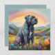 Um cartão de compaixão personalizado Cane Corso com uma bela pintura de Cane Corso em uma colina celestial com um belo arco-íris. Simbolizando o cão Cane Corso passou a ponte do arco-íris para o céu caidoso. Você pode personalizá-lo com o nome do seu cão Cane Corso ou qualquer outro texto no verso do cartão. Faz um memorial especial ou um presente de simpatia para qualquer amante de cachorro Cane Corso se seu querido cachorro passou.