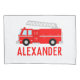 Seu filho ama bombeiros? O nome do caminhão de incêndio Pillowcase projetado pela Enchantfancy Design Company é perfeito para o futuro bombeiro ou bombeiro em sua vida. Esta design apresenta um caminhão vermelho brilhante com uma escada. Personalize com sua escolha de nome em texto vermelho brilhante.
