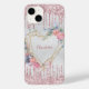 Um fundo de olhar mal prateado. Pingos cor-de-rosa pincelados, pingar tinta parece decoração. Um coração ouro decorado com flores rosa. Personalize e adicione um nome. O nome está escrito em um moderno roteiro escrito à mão.