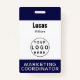 Personalize este crachá de nome de funcionário com o logotipo da sua empresa, o nome do funcionário ou outro texto personalizado. É plástico pvc e disponível com um clipe de metal, um jardim ou um bobine retrátil. Este é um crachá azul marinho com um design minimalista moderno. Você pode personalizar facilmente as cores, fontes e design para atender às suas necessidades e, opcionalmente, adicionar conteúdo ao verso. Nenhuma quantidade mínima de ordem e nenhuma taxa de configuração.