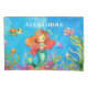Monograma de Cuta Nome Tartaruga Costeira e travesseiro Náutico de Sereia. Travesseiro cômoda submarino com uma Sereia azul-lacrimogênea. Perfeito para um quarto de moça tropical do oceano.
