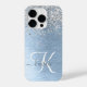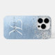 Personalize facilmente esta moda design de capa de telefone com de chic com brilho prateado bonito em um fundo metálico azul escovado.