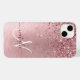 Personalize facilmente esta design de capa de telefone de chic moderna com brilho cintilante rosa-pincel bonito num fundo metálico rosado-pincelado e pincelado.