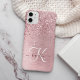 Personalize facilmente esta design de capa de telefone de chic moderna com brilho cintilante rosa-pincel bonito num fundo metálico rosado-pincelado e pincelado.