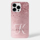 Personalize facilmente esta design de capa de telefone de chic moderna com brilho cintilante rosa-pincel bonito num fundo metálico rosado-pincelado e pincelado.
