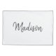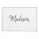 Se você ama o estilo minimalista de decoração do quarto, dê uma olhada neste travesseiro de Branco-Chic e Cinza com Monograma de Script Brugado. Ambos os lados são modernos projetados com um fundo branco personalizável e personalizados com nome na cinza. Clique na opção personalizar modelo e siga o prompt.