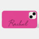 Personalize esta capas de iphone rosa quente, moderna, quic, que apresenta uma fonte de script de estilo manuscrito de tendência em preto.