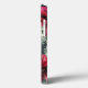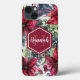 Caso de poinsettia vermelha rustica personalizada iPhone 13. - Pinsetos vermelhos, folhas ocas e bagas de inverno, de cor aquosa, de fundo branco. O fundo floral de inverno é tocado com um rótulo vermelho de baga e um modelo de nome de caligrafia de monograma/script personalizado. Uma prenda de poinsettia tradicional e caprichosa com um toque pessoal.
