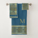 Toalha de banho-maria azul luxuosa e elegante, com monograma/inicial personalizável. Bonito presente para homens ou mulheres adultos com estilo exclusivo.