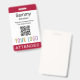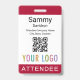 Personalize nosso crachá de participante profissional com seu logotipo, nome de participante e outro texto personalizado. É plástico pvc e disponível com um jardim, clipe ou um rolo retrátil. Projetado em vermelho escuro e outras cores com uma design moderna minimalista do MISOOK. Todas as cores são personalizáveis. Você pode, opcionalmente, adicionar conteúdo ao verso. Personalize facilmente o título do participante (convidado VIP, visitante, auto-falante etc.). Nenhuma quantidade mínima de ordem e nenhuma taxa de configuração. Todas as encomendas são satisfeitas pela Zazzle em produtos do Zazzle. O MISOOK NÃO tem suas informações de personalização, envio ou cartão de crédito, portanto entre em contato diretamente com a Zazzle para fazer perguntas, inclusive sobre como personalizar seu design.