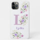 Design apresenta Monograma & Nome com Flores em ambos os lados no estilo pastel de cor de água. O nome de exemplo é Lydia. Pode ser para qualquer um com um nome começando com L.