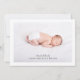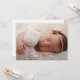 O anúncio de nascimento de uma foto de bebê moderna para uma menina ou um menino. Basta usar esta modelo para adicionar sua própria foto personalizada na frente e atrás da carta; do seu próprio doce bebê e personalizar com o nome do bebê na elegante tipografia de roteiro.