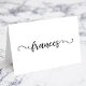 Nota importante: Este é um produto de placa simples que você precisará marcar e dobrar sozinho depois de recebê-los. Para obter os melhores resultados, use uma ferramenta de pontuação de fazer de placa de um repositório de artesanatos. Este tamanho irá dobrar-se num tamanho de 2,5 x 3,5. No sistema, você pode criar suas próprias cartas de casamento com uma adorável caligrafia negra elegante e elegante para um nome dado de convidado contra um fundo branco. Personalize o tamanho, a cor e os estilos da fonte, conforme necessário. Crie um cartão para cada convidado e adicione-o à sua encomenda individualmente. A tipografia apresenta uma fonte de assinatura moderna, decorativa e encaracolada.