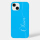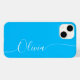 O Blue White Elegant Calliografia Script Personalizado Nome Personalizado iPhone 14 Smart Capa de telefone apresenta um design moderno e moderno, simples e na moda com seu nome personalizado em letras elegantes, escrita à mão, com script de caligrafia em um fundo azul. Elaborado por ©Evco Studio www.zazzle.com/store/evcostudio