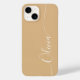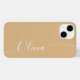 Brown Elegant White Calliografia Script Personalizado Nome iPhone 14 Smart Capa de telefone apresenta um design moderno e moderno, simples e na moda, com seu nome personalizado em elegante tipografia de script de caligrafia escrita à mão sobre um fundo marrom. Elaborado por ©Evco Studio www.zazzle.com/store/evcostudio