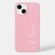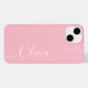 O Smartex iPhone 14 Smart Capa de telefone, Script de Caligrafia Elegante Branca Cor-de-Rosa, apresenta um design simples moderno e moderno e na moda com seu nome personalizado em tipografia de script de caligrafia escrita à mão elegante, em um fundo cor-de-rosa. Elaborado por ©Evco Studio www.zazzle.com/store/evcostudio