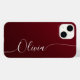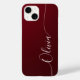 Burgundy Red Shimmer White Elegante Caligrafia Personalizada Script Personalizado Name iPhone 14 Smart Capa de telefone apresenta um design simples e moderno, e moderno, com seu nome personalizado em elegante tipografia de script de caligrafia escrita à mão sobre um fundo de cinzeiro vermelho embebido em metal. Elaborado por ©Evco Studio www.zazzle.com/store/evcostudio