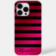 Crie uma capa de telefone personalizada exclusiva com um padrão listrado rosa e preto. Listras cor-de-rosa imitam a superfície metálica. O modelo de texto facilita a personalização da capa de telefone com seu nome.