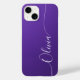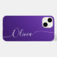 Ametist Shimmer White Elegant Calliografia Script Personalizado Nome Personalizado iPhone 14 Smart Capa de telefone apresenta um design simples e moderno e moderno com seu nome personalizado em elegante tipografia de script de caligrafia escrita à mão em um fundo de shimmer de ametista metálico. Elaborado por ©Evco Studio www.zazzle.com/store/evcostudio