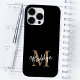 Capas de iphone de Nome Feminino do Monograma Dourado Preto Moderno. Personalize facilmente esta capas de iphone elegante moderna com o seu monograma e nome personalizados.