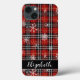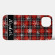 Personalize o seu telefone celular com este caso com um design vermelho e preto de xadrez de inverno com flocos de neve e neve e um nome ou monograma em um estilo de fonte de script manuscrito chic editável. ASSISTÊNCIA: Para obter ajuda com a modificação ou personalização do design, alteração de cor, redimensionamento, transferência do design para outro produto ou, se você quiser coordenar itens, entre em contato com o designer ANTES DE PEDIR através da guia MENSAGEM de bate-papo Zazzle abaixo ou envie um email para makeitaboutyoustore@gmail.com.