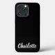 Nome personalizado de script de na moda personalizado de capas de iphone preto fofo moderno. Texto branco personalizável, fundo plano preto sólido.