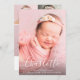 Anúncio de nascimento moderno com a escrita moderna e a colagem de fotos nas costas.