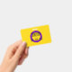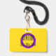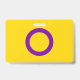 O fundo é a bandeira do orgulho das pessoas intersexuais. Este é um anel roxo sobre fundo amarelo. Há espaço para um nome e pronomes personalizados.