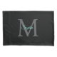 Nome do script teal e monograma de cinza grande em fundo preto. Clique em "Editar" para mudar facilmente as cores e digitar estilos.