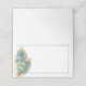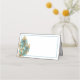 Este cartão de lugar dobrado é mostrado em branco básico no papel de cartão foscado com um impressão de penas de pavão. A cor do limite é azul enfumaçado. Personalize este item ou exatamente como está e escreva o nome manualmente. Imagem licenciada