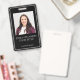 Um crachá moderno com seu nome e título em um fundo preto. .Basta adicionar sua foto e informações. Esta versão vem com um pátio, mas você pode escolher seu estilo de fixação que inclui, jardim, clipe de metal ou retrátil, ou nenhum anexo.