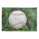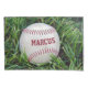 Um close-up de baseball em grama verde com um nome personalizado. O nome é editável ou pode ser excluído.